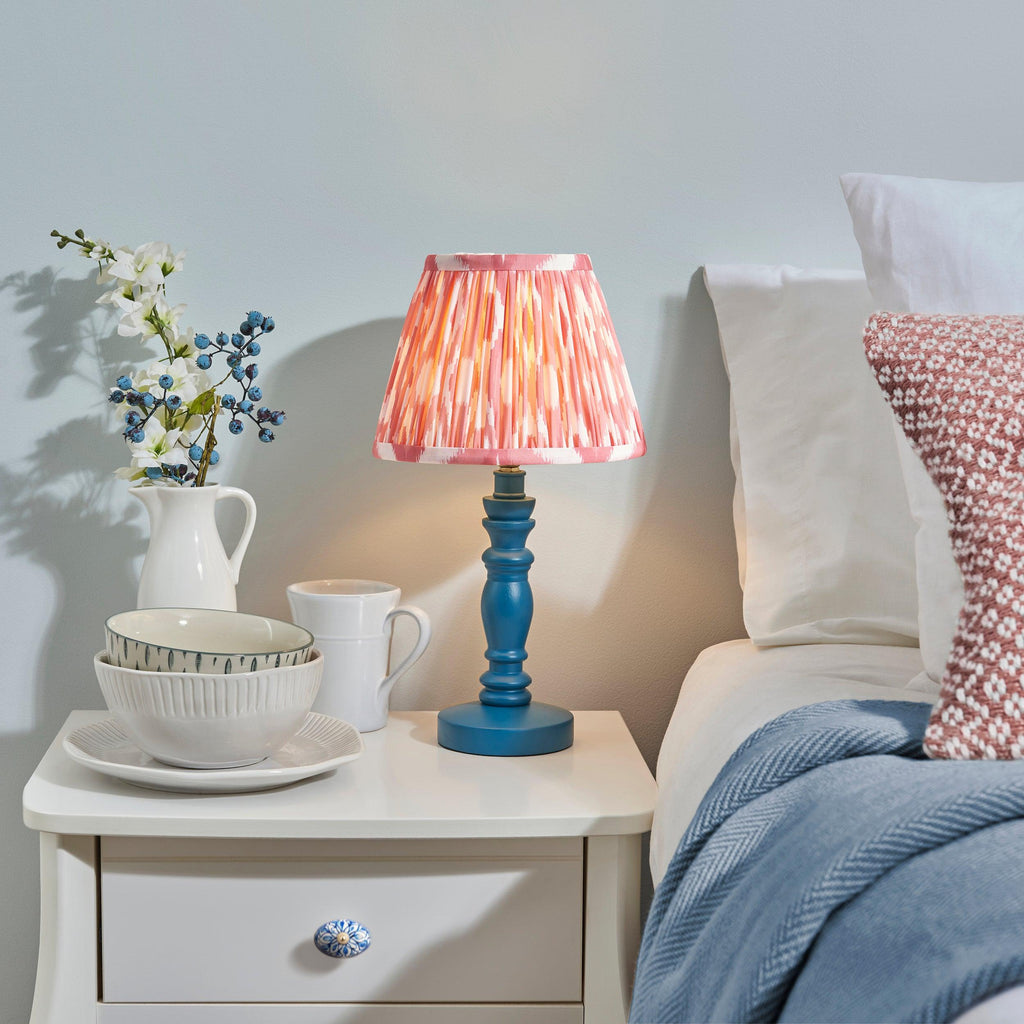 Bibury Blue Table Lamp & Ikat 20cm Coral Pink Shade
