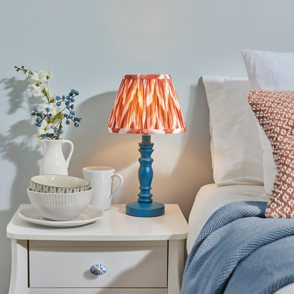 Bibury Blue Table Lamp & Zigzag 20cm Apricot Orange Shade
