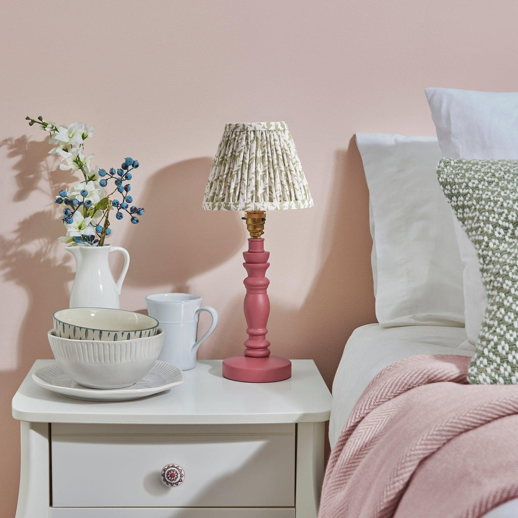 Bibury Pink Table Lamp & Leaf 16cm Herb Garden Green Shade