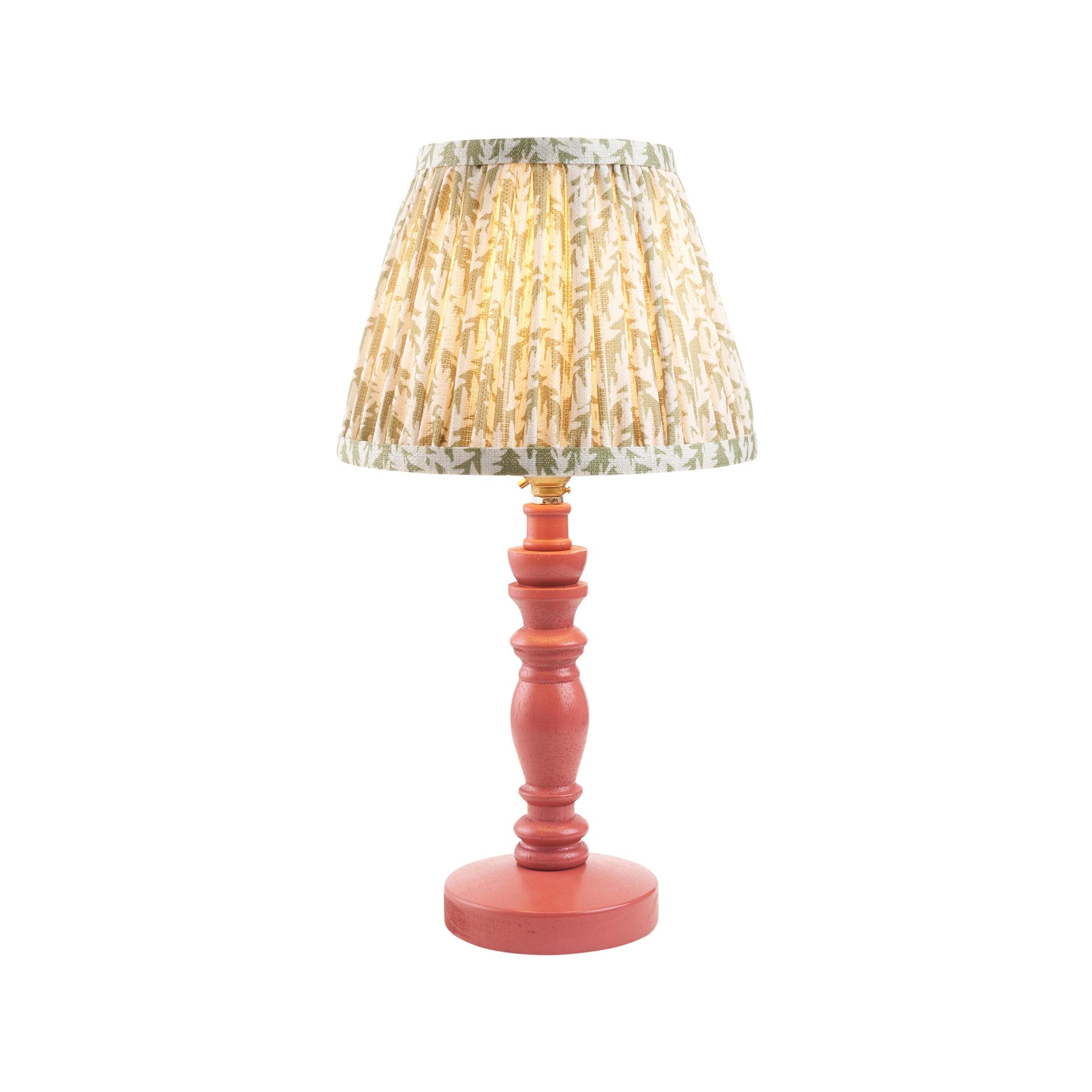 Bibury Pink Table Lamp & Leaf 20cm Herb Garden Green Shade