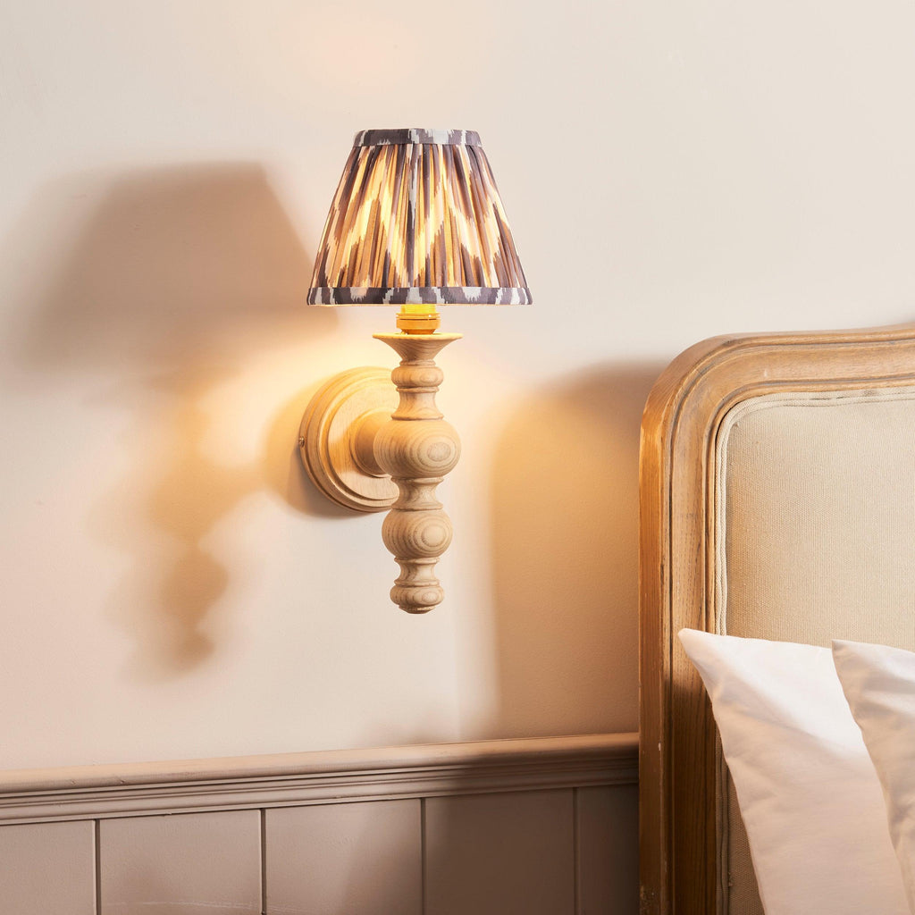 Introducing our stunning Ash Wooden Turned Spindle Wall Light, a perfect addition to classic interiors that exudes elegance and charm. Crafted from beautiful natural ash wood, this exquisite piece features a brass B22 lamp holder, ensuring both style and functionality. To enhance its classic appeal, we've paired it with our chic 16cm Pearl Grey Zigzag Shade, creating a unique focal point that complements any decor. This wall light is not just a standalone piece; it’s part of our coordinated bedroom lighting range, allowing you to effortlessly create a cohesive and inviting atmosphere throughout your space. We prioritize your shopping experience, offering secure delivery and easy returns, so you can shop with confidence. Enjoy a safe online shopping experience with us, knowing that your satisfaction is our top priority. Illuminate your home with sophistication and style today!| Projection | 19cm/7.5" |