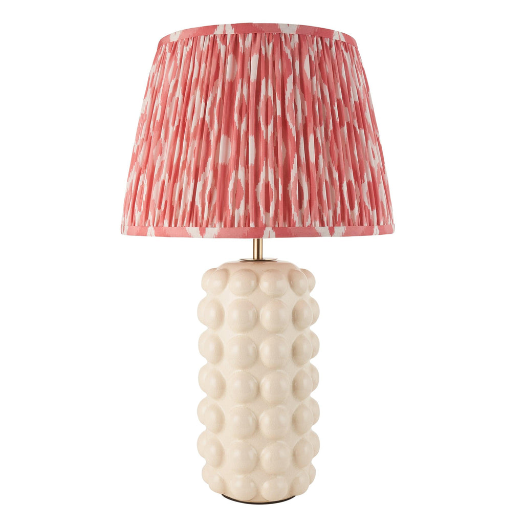 Bobble White Ceramic Table Lamp & Ikat 35cm Coral Pink Shade