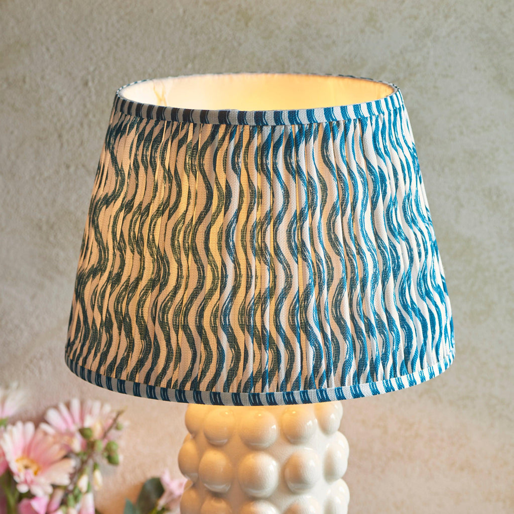 Bobble White Ceramic Table Lamp & Ripple 35cm Marlin Blue Shade