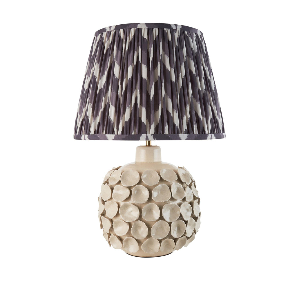 Borello Ivory Ceramic Table Lamp & Zigzag 35cm Pearl Grey Shade
