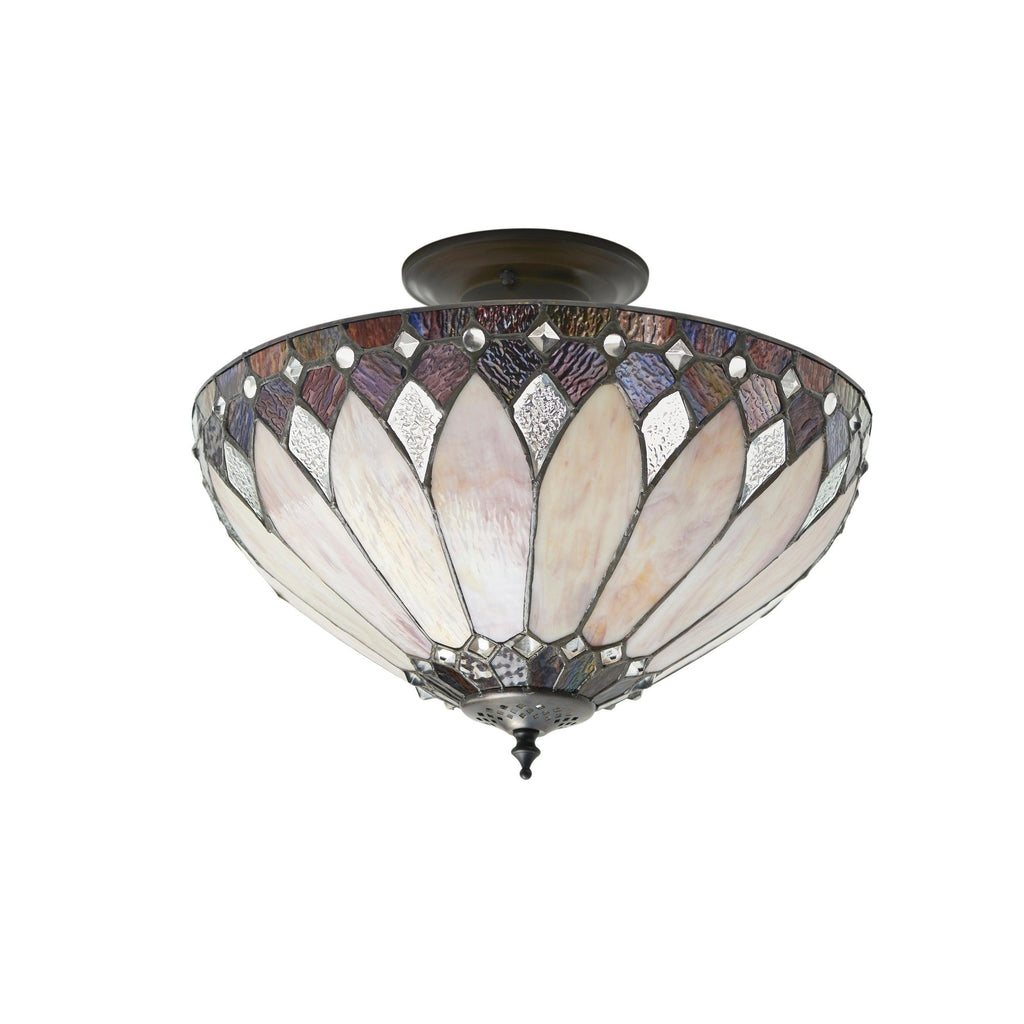 The Brooklyn Tiffany Medium Semi-Flush Ceiling Light by Interiors 1900 combines Art Deco design elements with neutral colours allowing it to work well in both traditional and modern homes. This light has a low depth of only 35cm/14" allowing it to go perfectly in home with low ceilings. It takes 2 x E27 60W bulbs and can be used with LED bulbs.