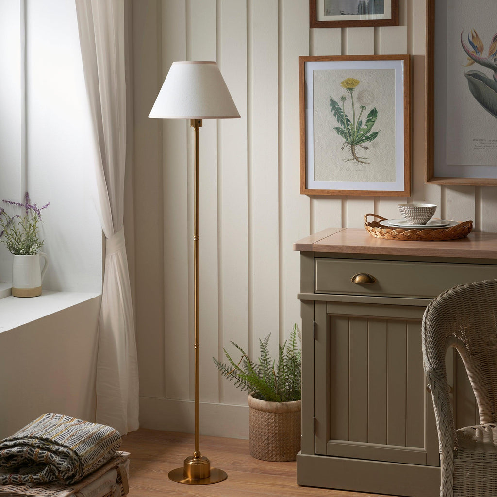Burley Rechargeable Brass Floor Lamp & Ivy 30cm Vintage White Shade