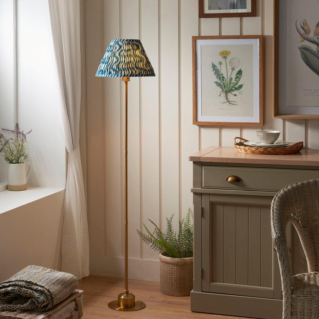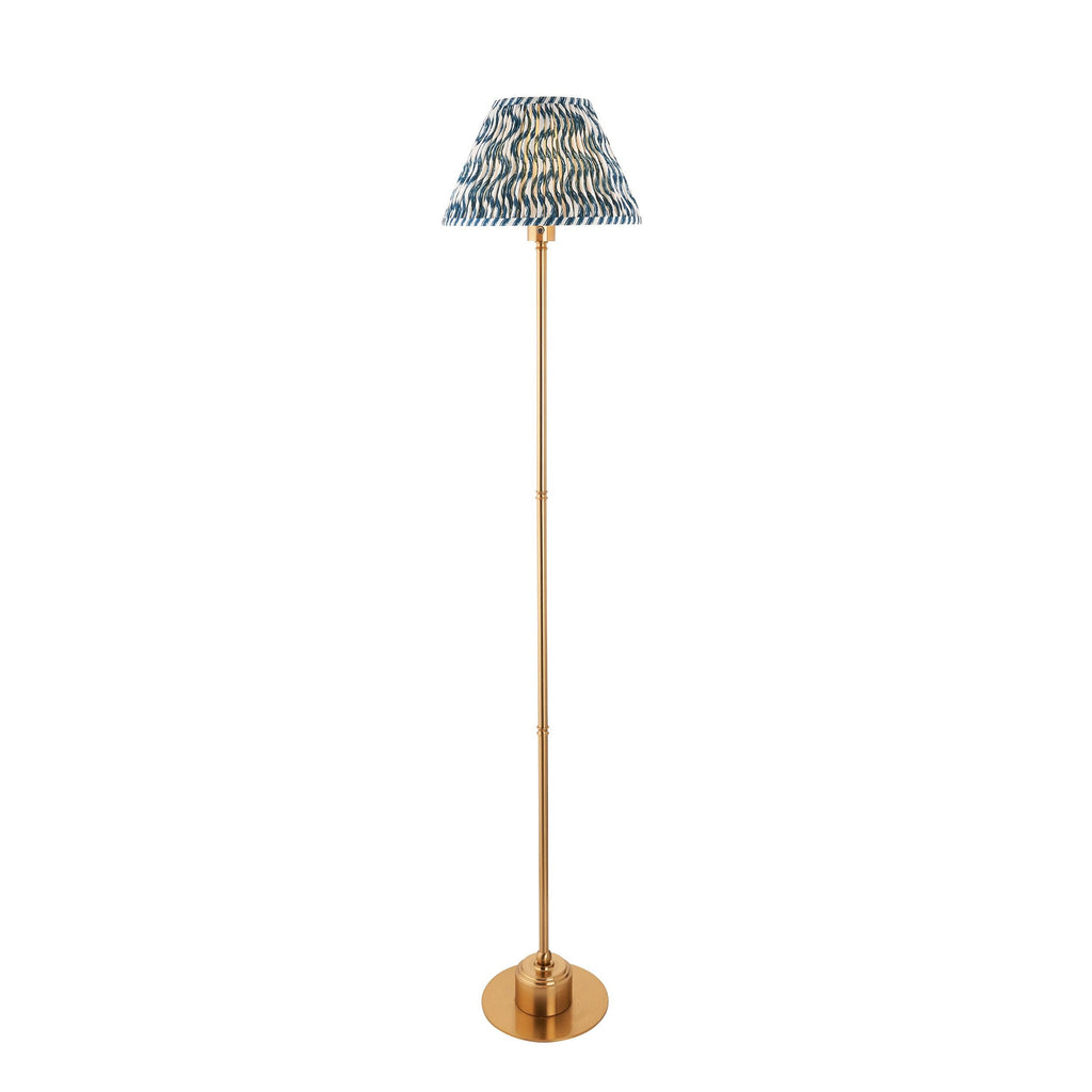 Burley Rechargeable Brass Floor Lamp & Ripple 30cm Marlin Blue Shade