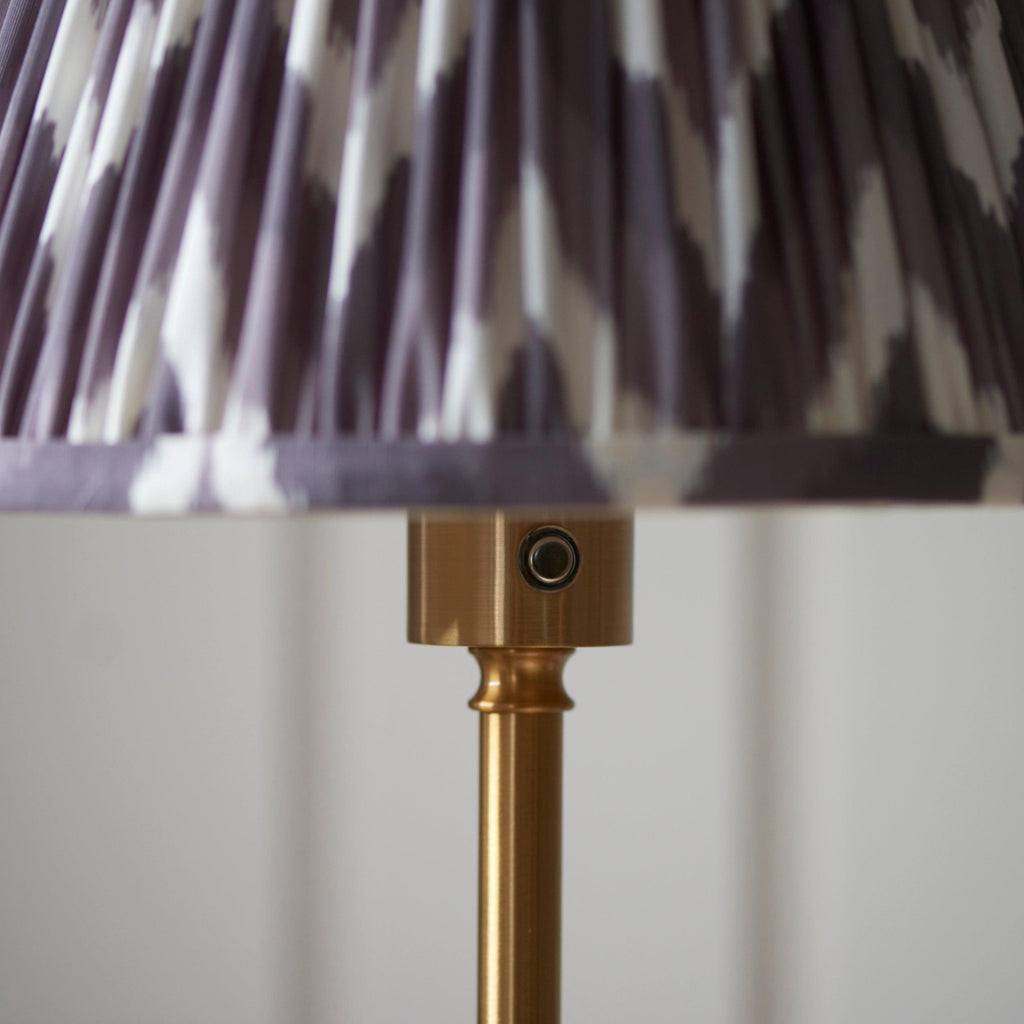 Burley Rechargeable Brass Floor Lamp & Zigzag 25cm Pearl Grey Shade