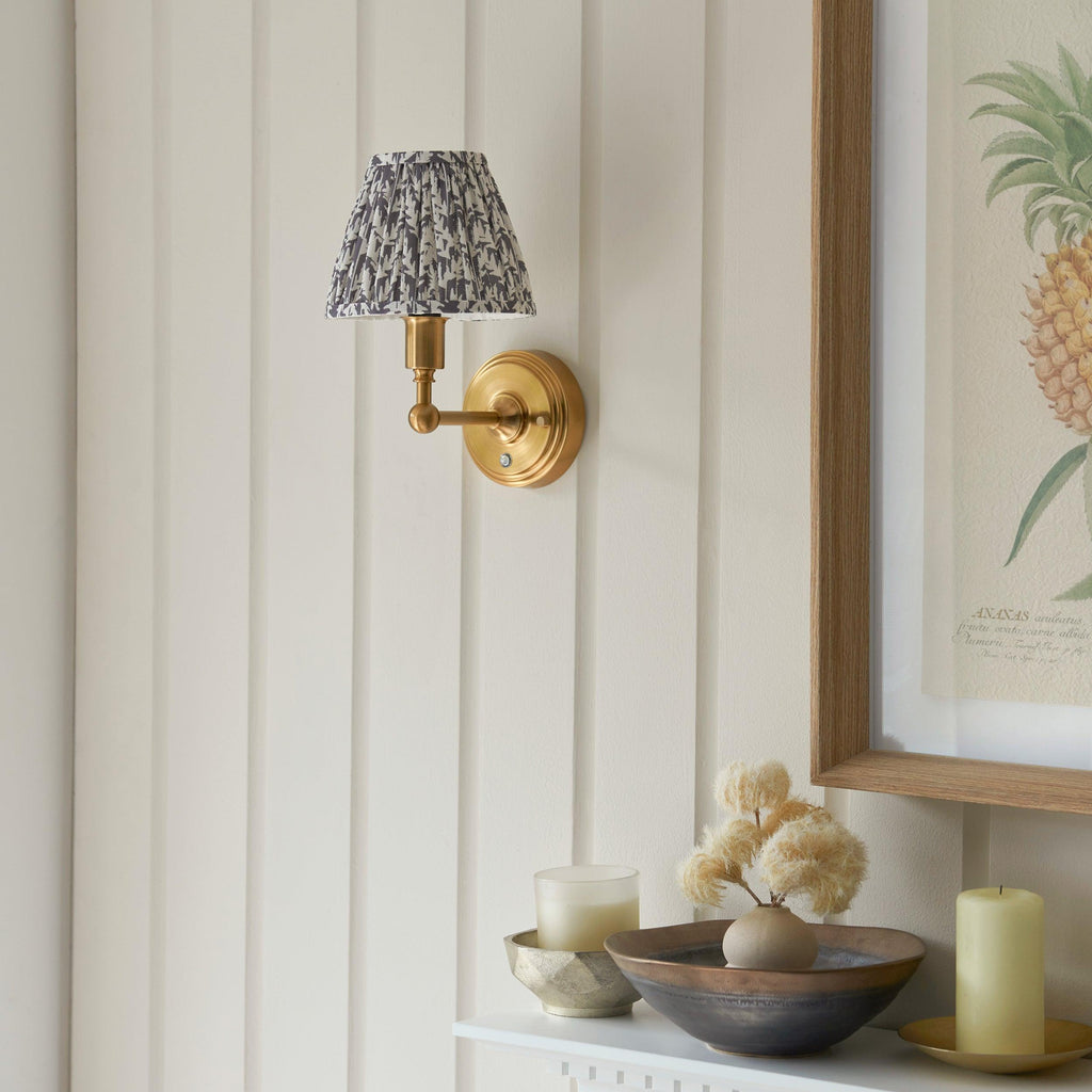 Burley Rechargeable Brass Wall Light & Leaf 16cm Pearl Grey Shade