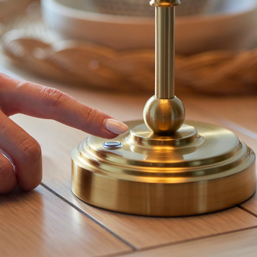 Experience the freedom of light with our portable, rechargeable 3-stage touch dimmer table lamp. Unshackled from the constraints of a power cable, this lamp allows you to effortlessly choose your desired brightness level—perfect for any setting. Its classic design, finished in elegant aged brass, seamlessly complements any decor, making it an ideal addition to your home. Whether you need a soft glow for a cozy evening or bright illumination for reading in the dining room, simply touch the lamp to cycle through low, medium, and bright settings. With a quick 5-hour charge, enjoy up to 30 hours of continuous light, ensuring you have the perfect ambiance whenever you need it. Versatile enough to enhance your shelving, hallways, bedside tables, or dining areas, this lamp is a must-have for any space. For an added touch of style, pair it with our vibrant marlin blue 16cm Ripple clip-on shade, creating a timeless look that elevates your home decor. Shop with confidence knowing we offer secure delivery, easy returns, and a safe online shopping experience. Illuminate your life with this exquisite lamp today!| Height | 39.5cm/15.6" |