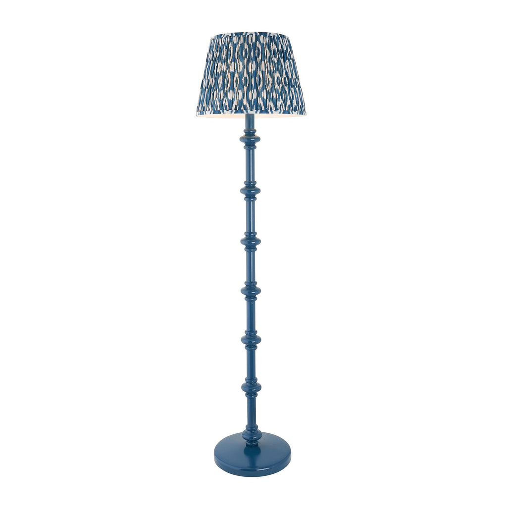 Carnaby Blue Wooden Floor Lamp & Ikat 40cm Marlin Blue Shade