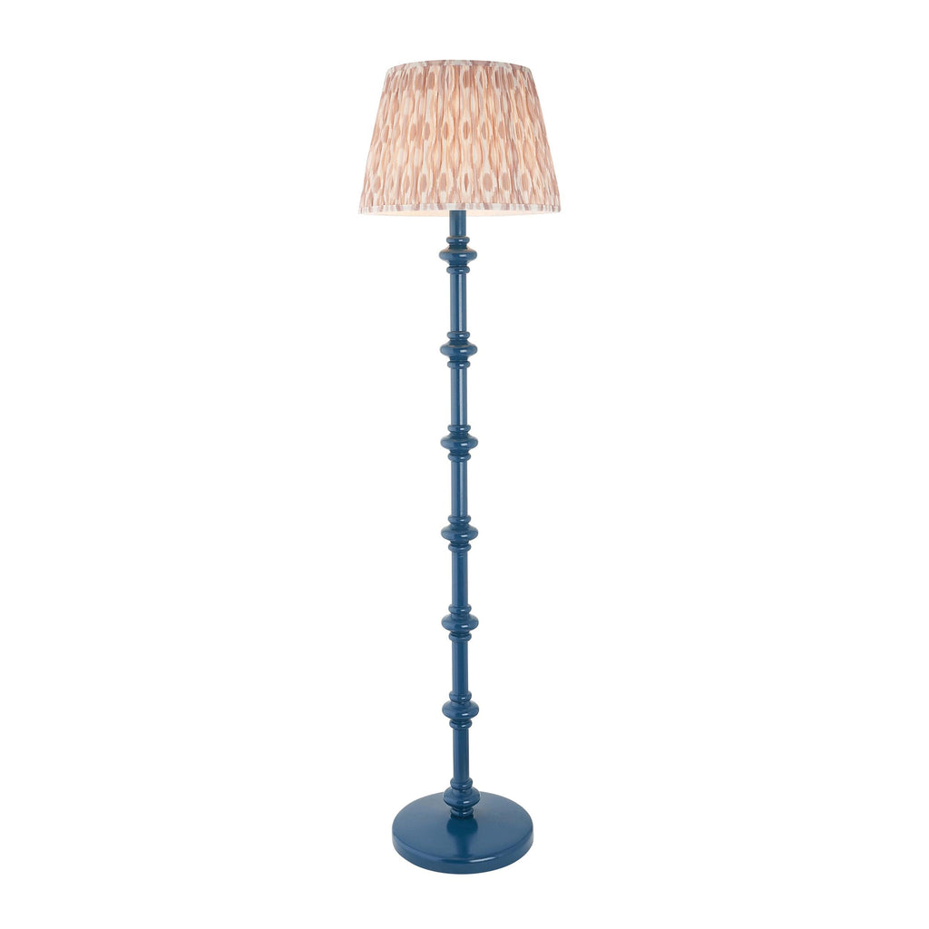 Carnaby Blue Wooden Floor Lamp & Ikat 40cm Neutral Shade