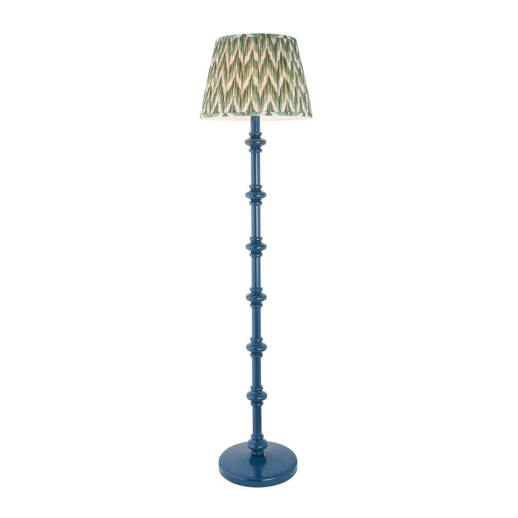 Carnaby Blue Wooden Floor Lamp & Zigzag 40cm Cotswold Green Shade
