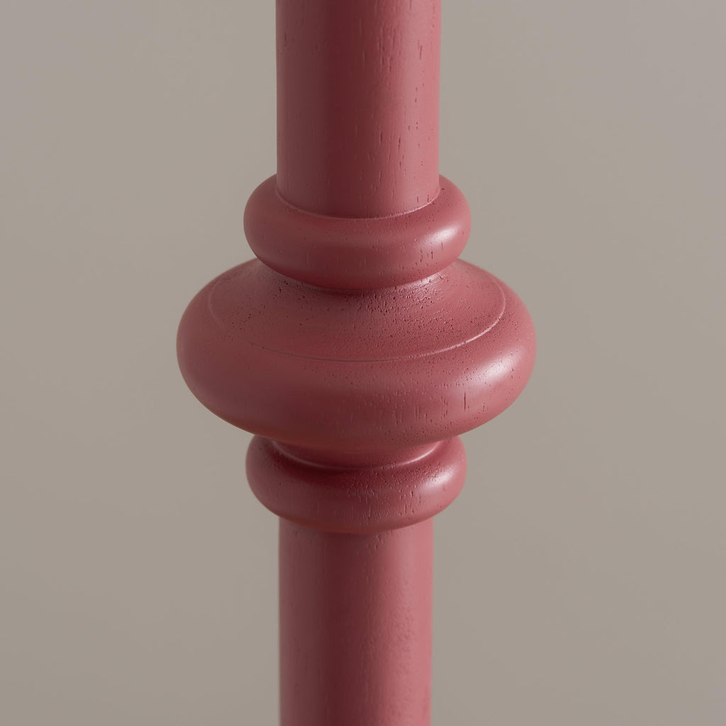 Introducing our exquisite wooden turned spindle floor light, a stunning blend of timeless design and contemporary flair. Crafted with care, this unique piece is painted in a sophisticated satin pink clay, complemented by a brass B22 switched lamp holder and elegant grey braided fabric flex. Each floor light is meticulously turned by hand on a wood lathe, ensuring that every item is one-of-a-kind. The subtle variations in finish add to the individual charm and character of each piece. Perfect for creating a cozy reading nook in your living room, this floor light not only illuminates your space but also enhances its aesthetic appeal. The stylish pearl grey 40cm Zigzag shade adds a touch of elegance, making it a standout addition to any decor. We prioritize your shopping experience with secure delivery, easy returns, and a safe online shopping environment. Elevate your home with this beautiful floor light and enjoy the perfect ambiance for your reading moments.| Height | 152cm/59.8" |