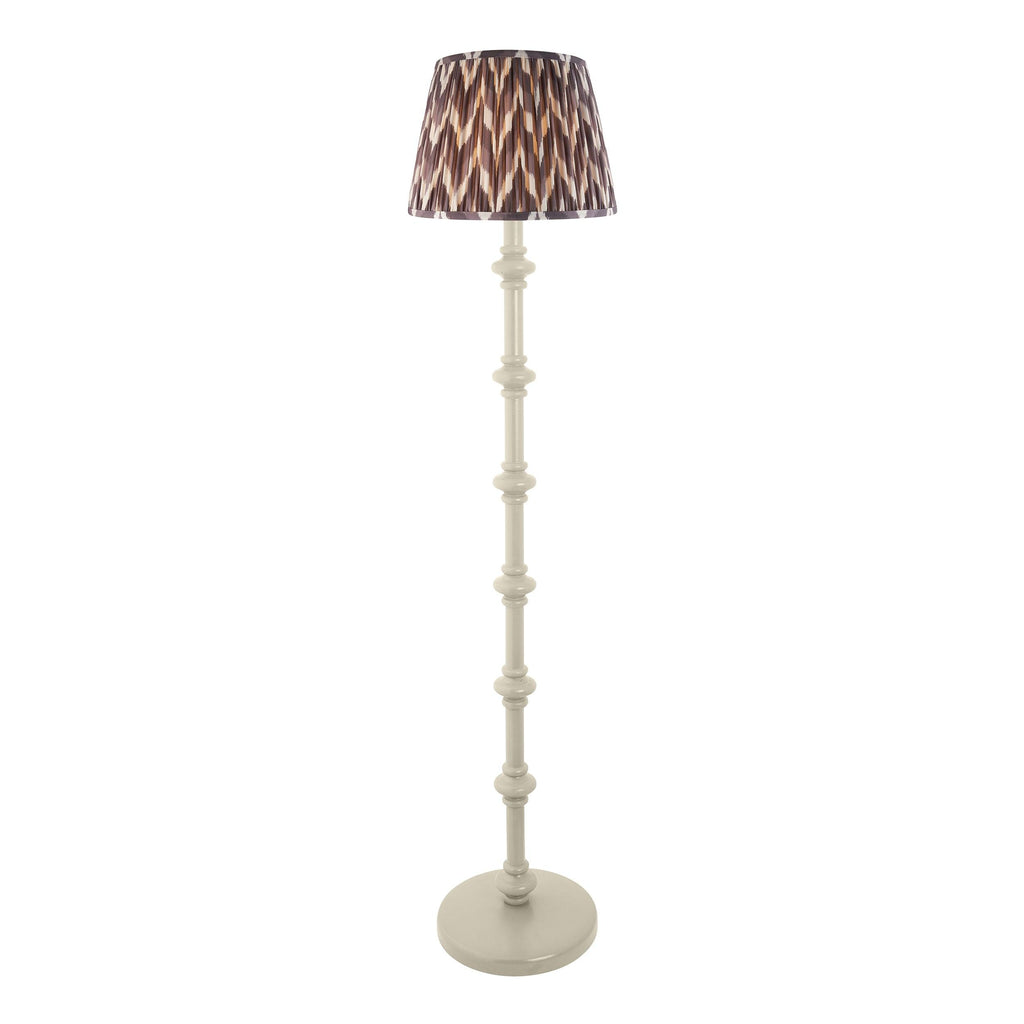 Introducing our exquisite wooden turned spindle floor light, a stunning blend of timeless design and contemporary elegance. Crafted with care, this unique piece is painted in a classic satin almond white, featuring a brass B22 switched lamp holder and a chic grey braided fabric flex. Each floor light is meticulously turned by hand on a wood lathe, ensuring that every item is one-of-a-kind. The subtle variations in finish add to the individual charm and character of each piece. Perfect for creating a cozy reading nook in your bedroom, this floor light is topped with our stylish 35cm Zigzag shade in a sophisticated pearl grey, adding a touch of classic flair to your space. We prioritize your shopping experience with secure delivery, easy returns, and a safe online shopping environment. Illuminate your home with this beautiful floor light and enjoy the perfect ambiance for relaxation and reading. Order yours today!| Height | 157cm/61.8" |