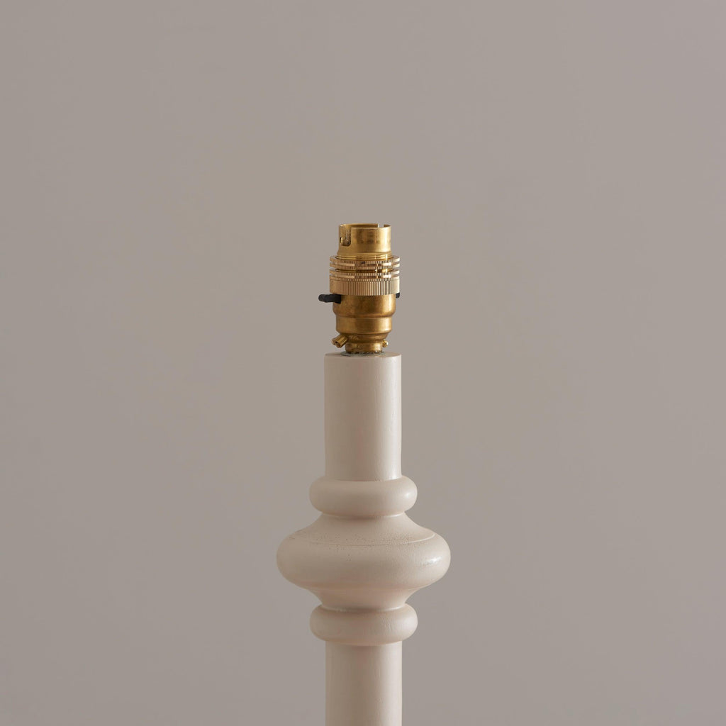 Introducing our exquisite wooden turned spindle floor light, a stunning blend of timeless design and contemporary elegance. Crafted with care, this unique piece is painted in a classic satin almond white, featuring a brass B22 switched lamp holder and a chic grey braided fabric flex. Each floor light is meticulously turned by hand on a wood lathe, ensuring that every piece is one-of-a-kind. The subtle variations in finish add to the individual charm and character of your light. Perfect for illuminating your living room, this floor light creates a warm and inviting atmosphere, making it an ideal companion for cozy reading sessions or relaxing evenings. It is elegantly topped with our stylish pearl grey 40cm Zigzag shade, adding a touch of sophistication to any space. We prioritize your shopping experience with secure delivery, easy returns, and a safe online shopping environment. Elevate your home decor with this beautiful floor light and enjoy the perfect blend of style and functionality.| Height | 152cm/59.8" |
