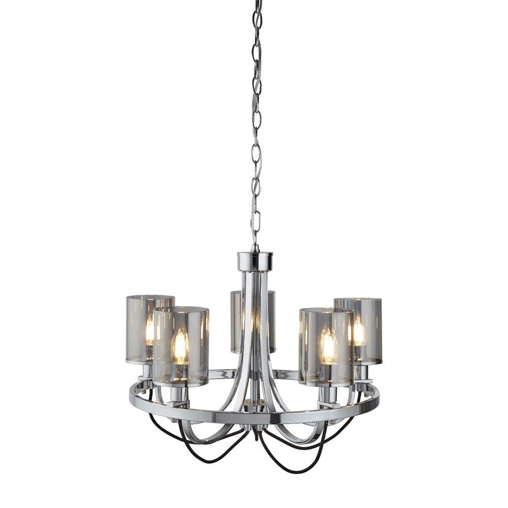 Catalina 5 Light Chrome Ceiling Pendant - Smoked Glass Shades