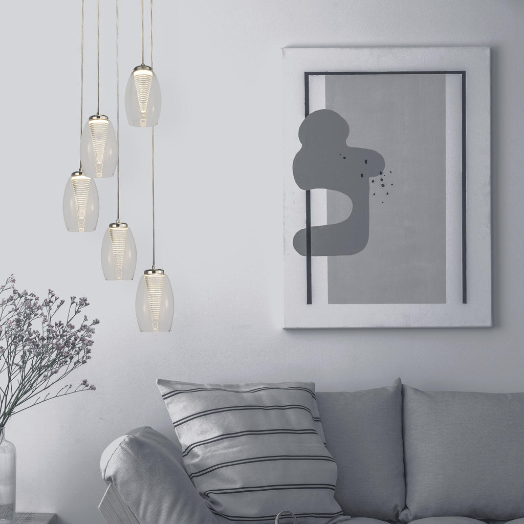 Stand out with a lighting fixture that is both contemporary and exclusive. The Cyclone 5 Light LED Pendant is not just a light; it's a piece of art.