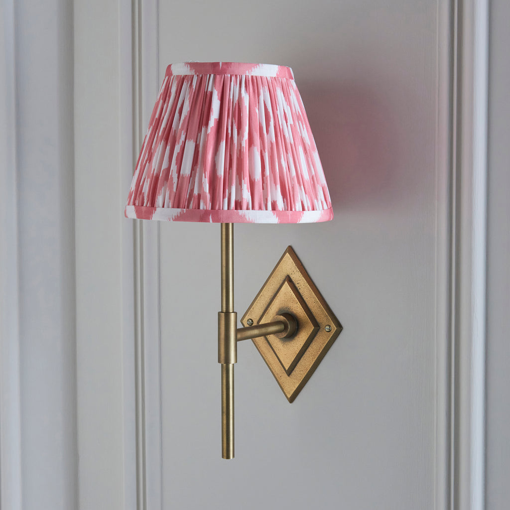 Diamond Brass Tall Wall Light & Coral Pink Ikat 20cm Shade