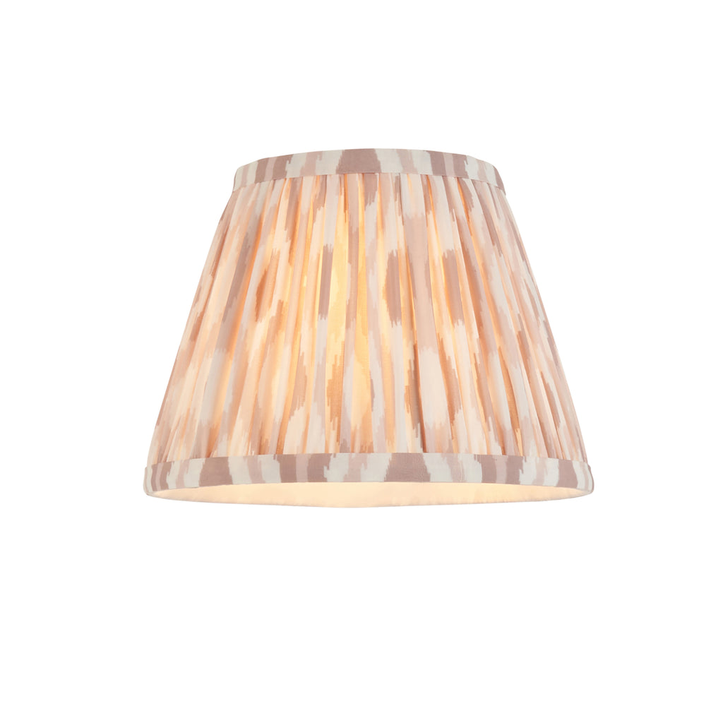 Bold yet refined, this single B22 wall light combines artisan craftsmanship with vibrant character. Its sand-cast decorative wall plate features a stepped diamond design, bringing textural interest and timeless appeal. Paired with a tapered pleated fabric shade in a neutral colour Ikat pattern, it adds a soft, inviting glow—perfect for hallways, bedside settings, or eclectic interiors seeking a touch of handcrafted elegance.