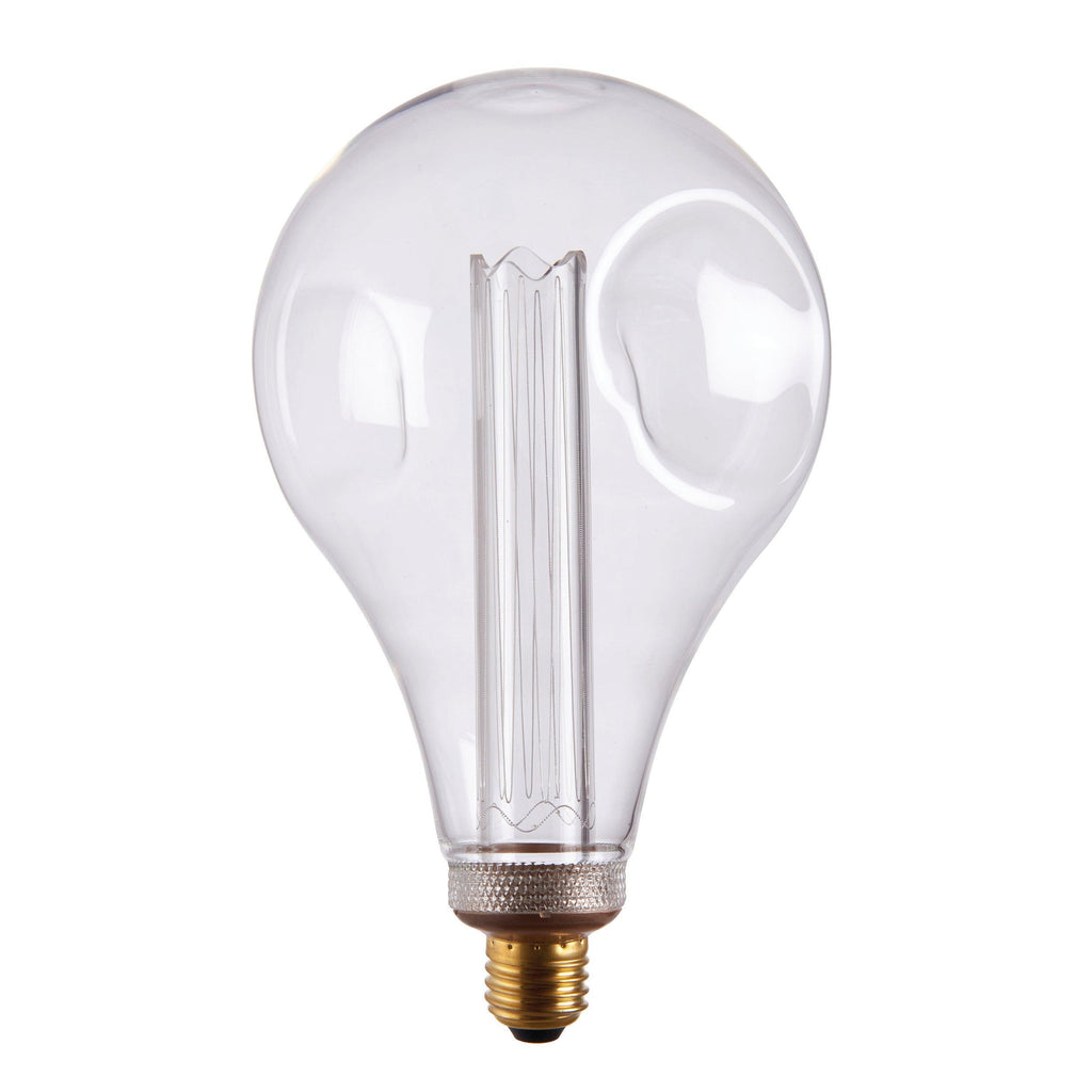 The perfect light accessory, this XL clear glass anti-glare LED energy saving lamp has a subtle warm light output, without compromising on style for that authentic light effect . Featuring 'melted' style dimple glass effect and an internal etched acrylic cylinder to diffuse the light and reduce glare. The perfect addition to exposed light designs for today's stylish homes, less glare, still achieving that on trend bar, hotel look.