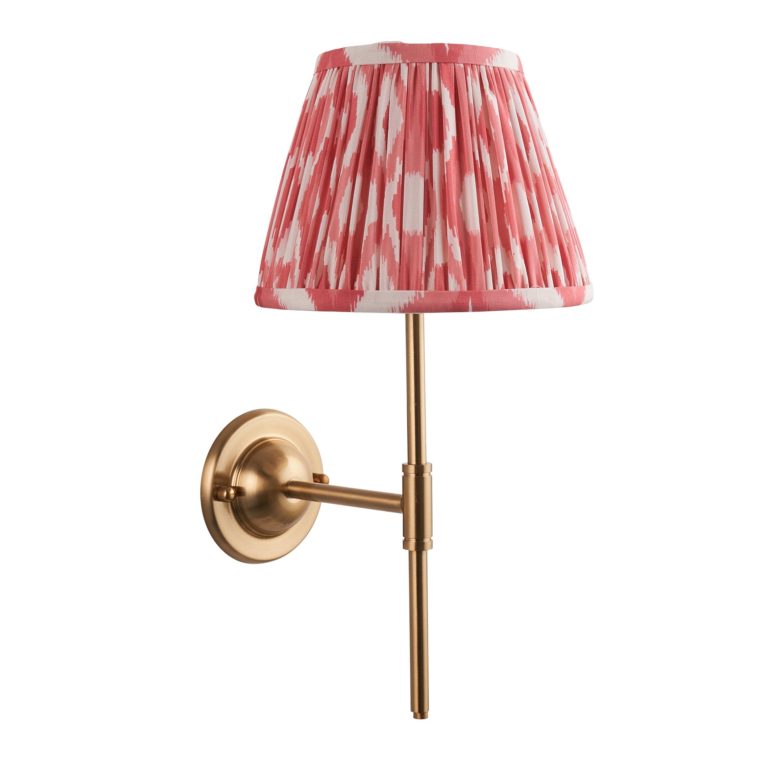 Dome T Bar Brass Wall Light & Ikat 20cm Coral Pink Shade