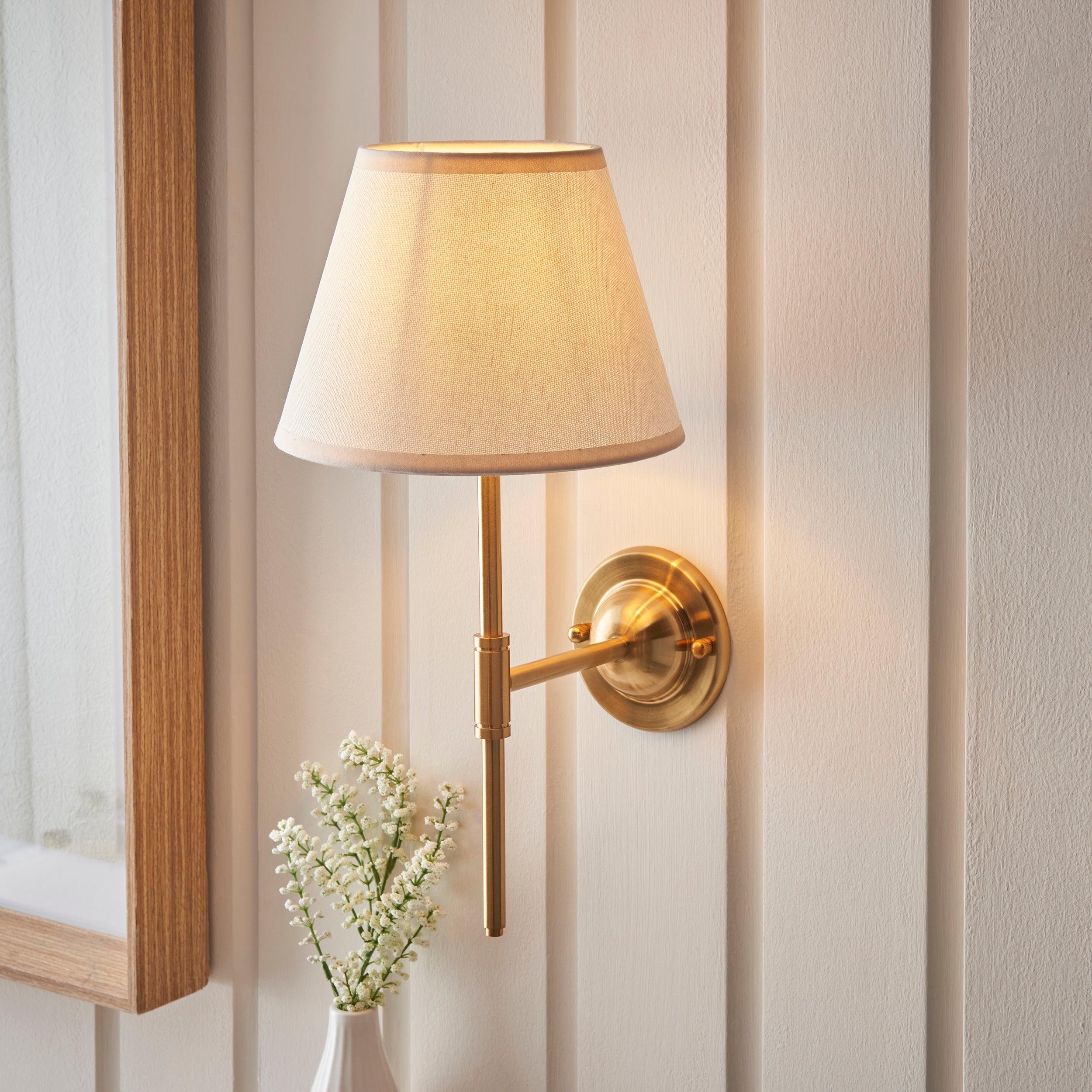 Introducing our timeless and sophisticated wall light, designed to elevate any space in your home. This exquisite fixture features a beautifully crafted dome-shaped wall back paired with an elegant linear arm, making it a perfect addition to your living room or any area that deserves a touch of refinement. Finished in brushed aged brass, this wall light is complemented by our vintage & white 20cm Ivy shade, creating a harmonious blend of classic charm and modern elegance. To enhance your decor, explore our coordinated lighting range, designed to seamlessly integrate with this piece and transform your living room into a stylish sanctuary. We prioritize your shopping experience, offering secure delivery and hassle-free returns, so you can shop with confidence. Enjoy a safe online shopping experience and illuminate your home with our stunning wall light today!| Projection | 24cm/9.4" |