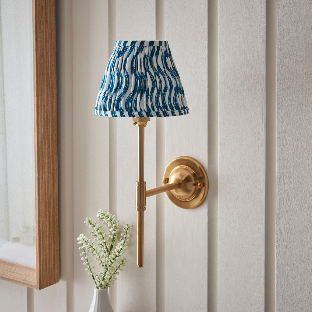 Dome T Bar Brass Wall Light & Ripple 16cm Marlin Blue Shade