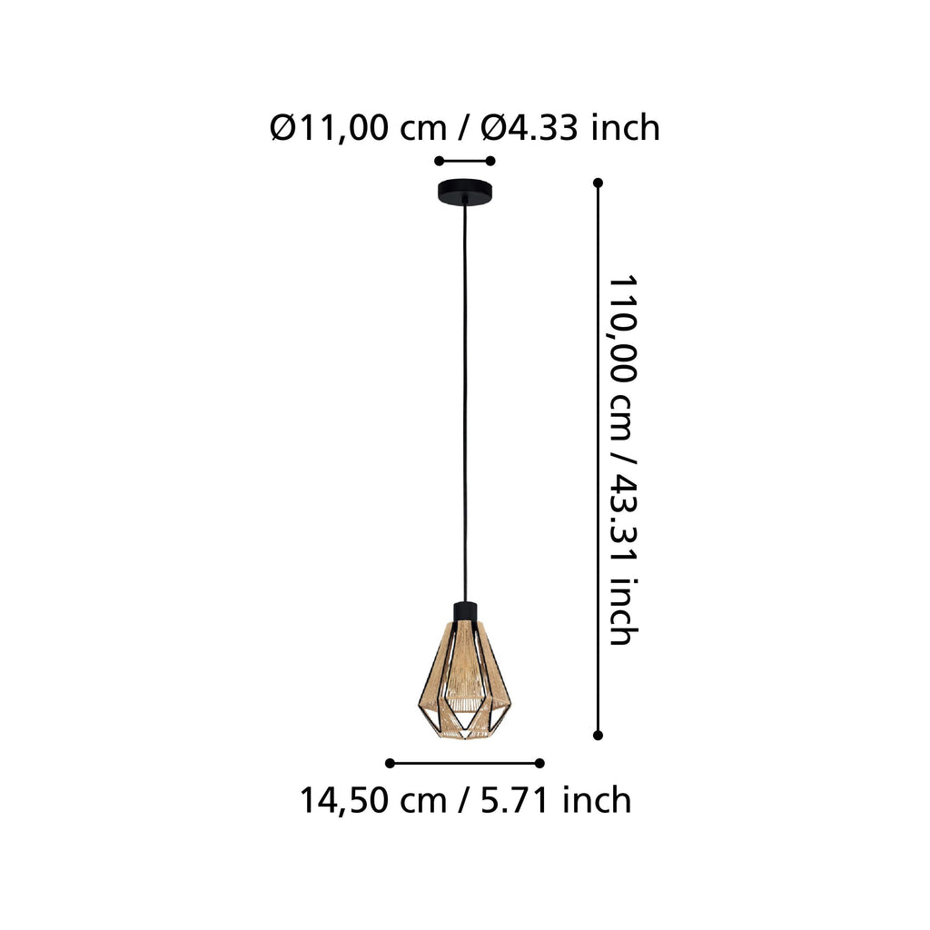 Eglo Adwickle Black Metal Wire & Hemp Ceiling Pendant
