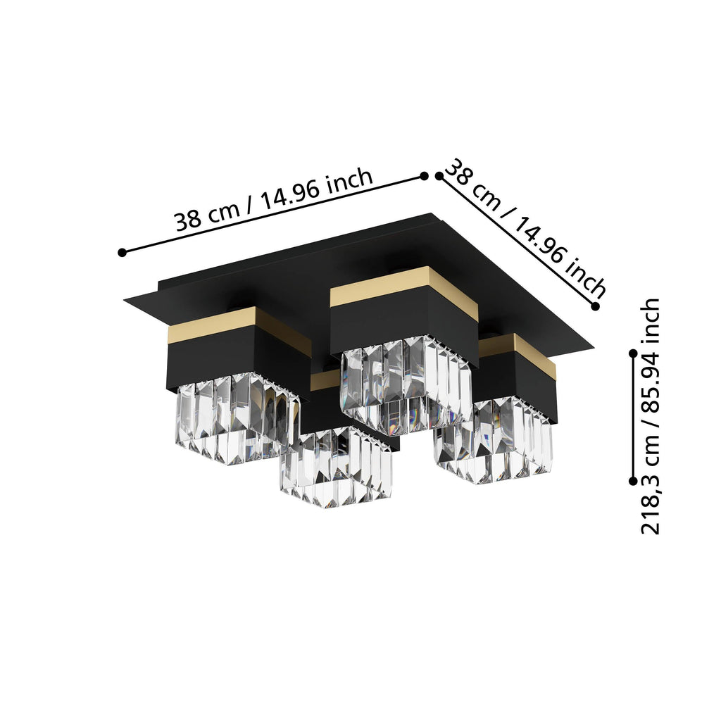 Eglo Barrancas 4 Light Black, Gold & Glass Crystal Ceiling Flush