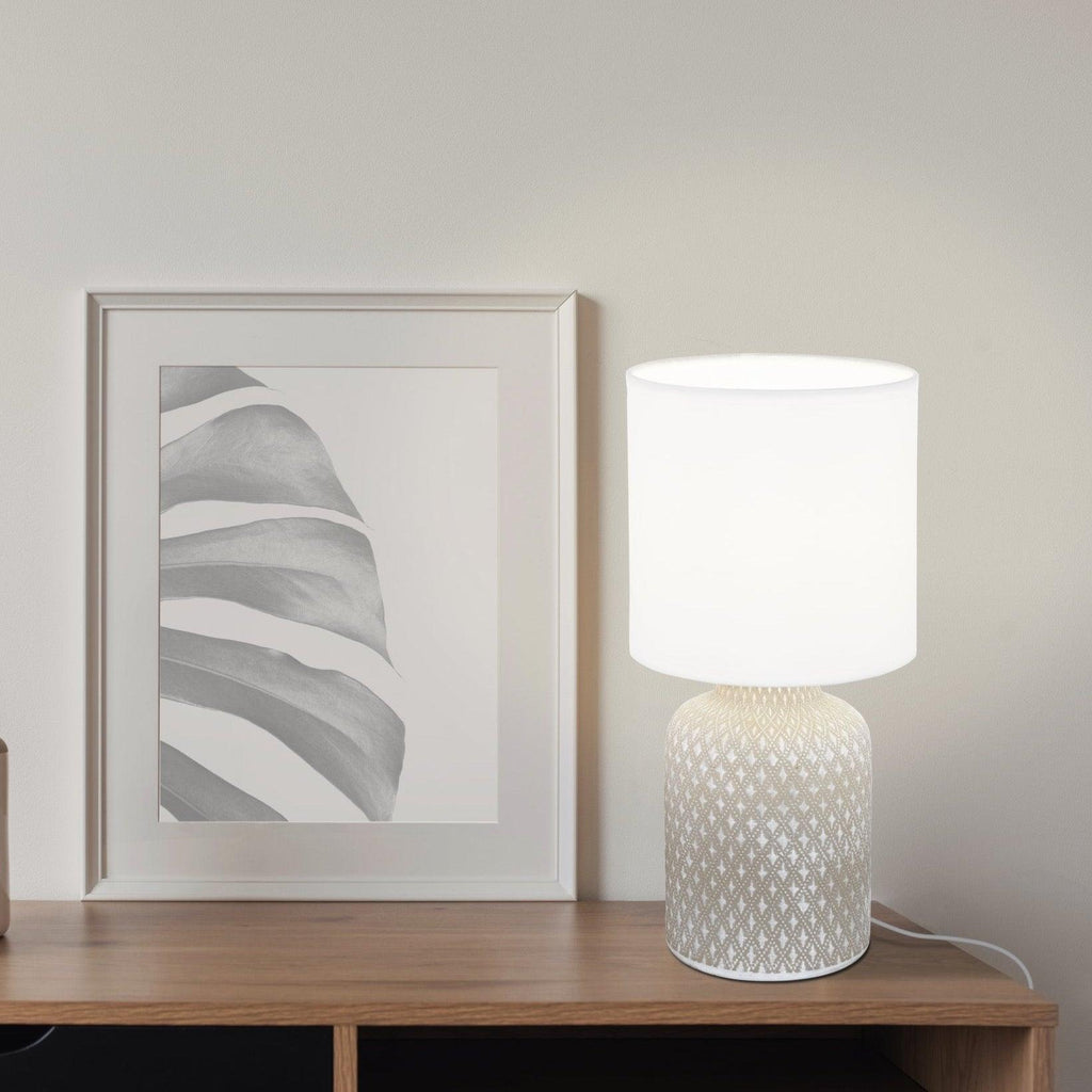 Eglo Bellariva Grey Ceramic Table Lamp - White Fabric Shade