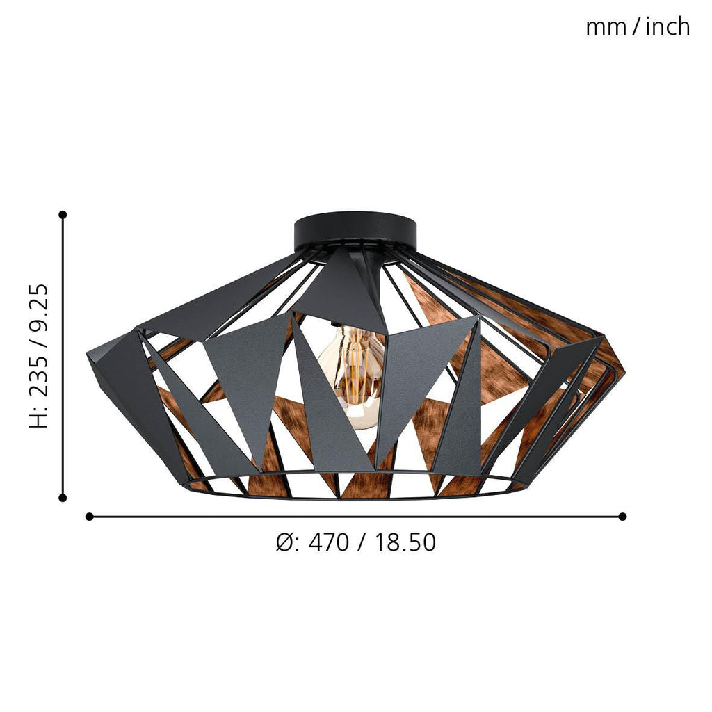 The CARLTON 6 ceiling light features a diamond-shaped black metal body with an inner copper lining. When the ceiling light is on, this product creates a fascinating play of light and shadow through the geometric apertures. The ceiling light complements retro-chic interiors and works well in any space, whether in the kitchen, the living room, the bedroom, the hallway or the dining room. The product requires 1 E27 lightbulb that is not included.| Height | 23.5cm/9.3" |