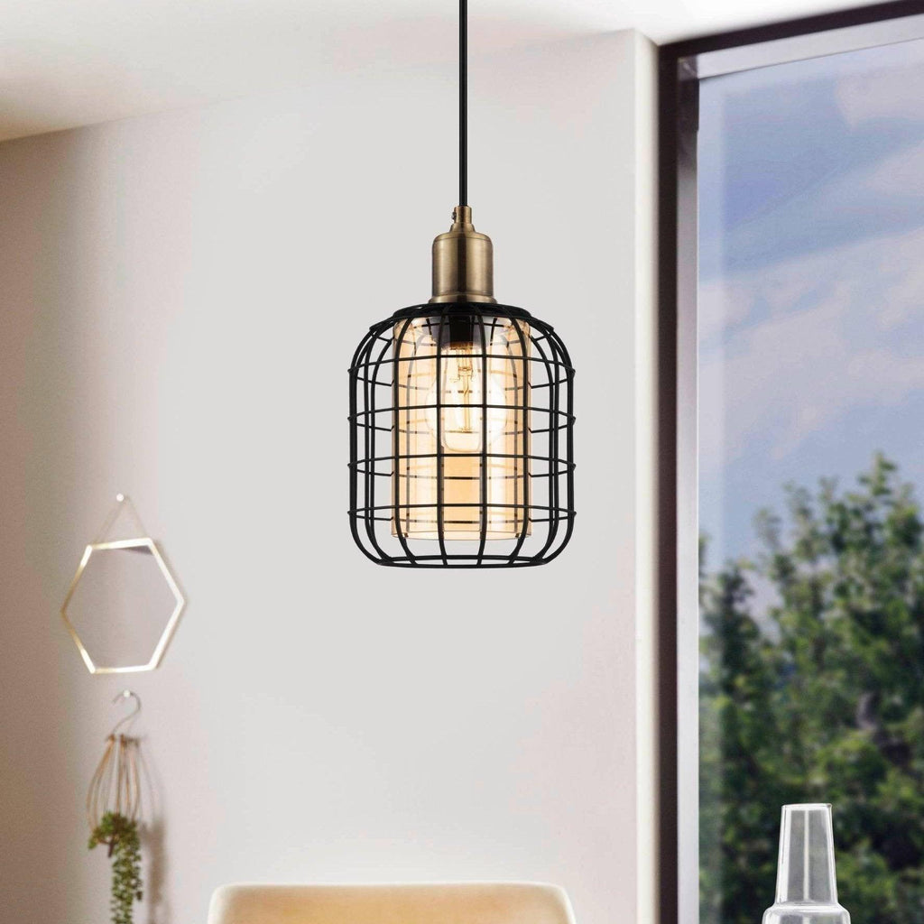 The CHISLE pendant light features a black wire lampshade with an amber glass inner shade that hangs from a black metal canopy. When the light is on, the caged design creates a fascinating play of light and shadow through the wireframe, and the combination of elegant glass and rustic metal blends perfectly into modern loft-style interiors. The product creates statement lighting in any space, whether in the living room or above the dining room table. The product requires 1 E27 lightbulb which is not included.