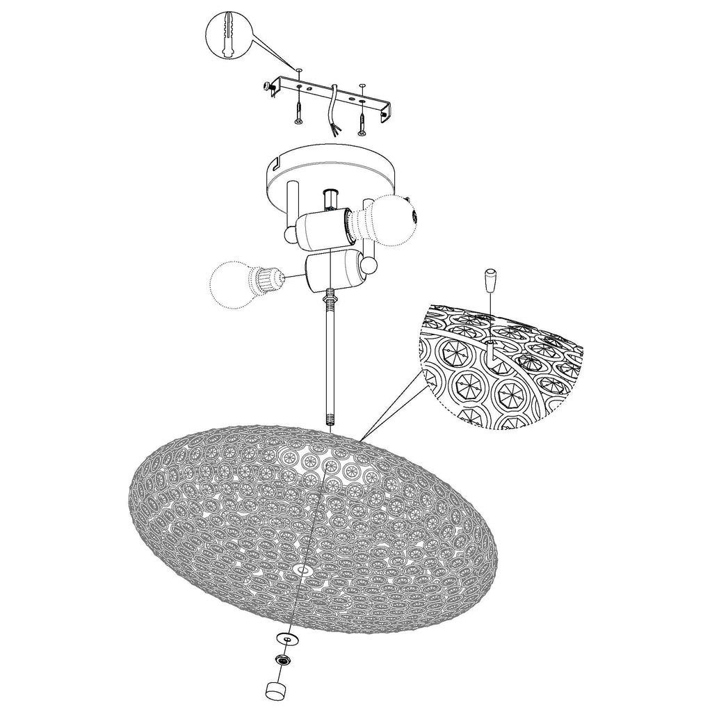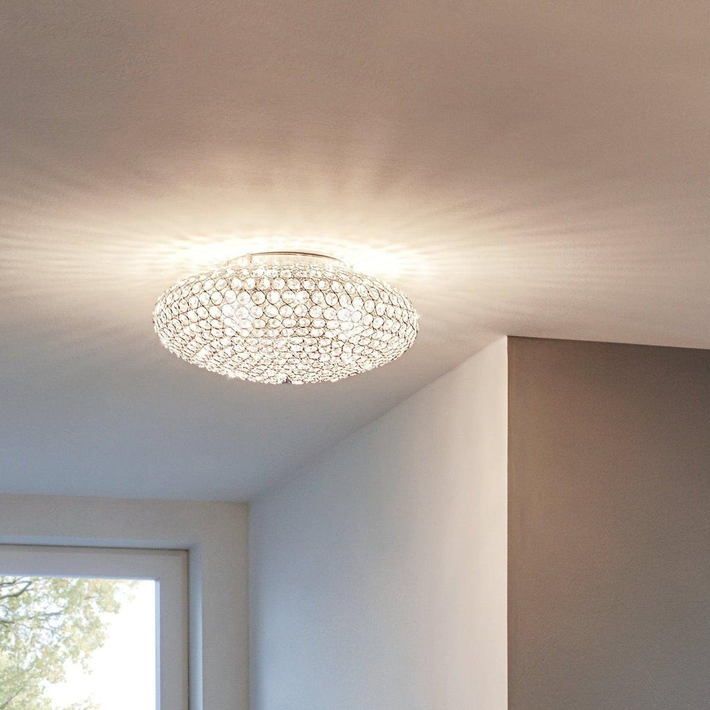 Eglo Clemente Flush Chrome & Clear Glass Crystals Ceiling Light - 35cm