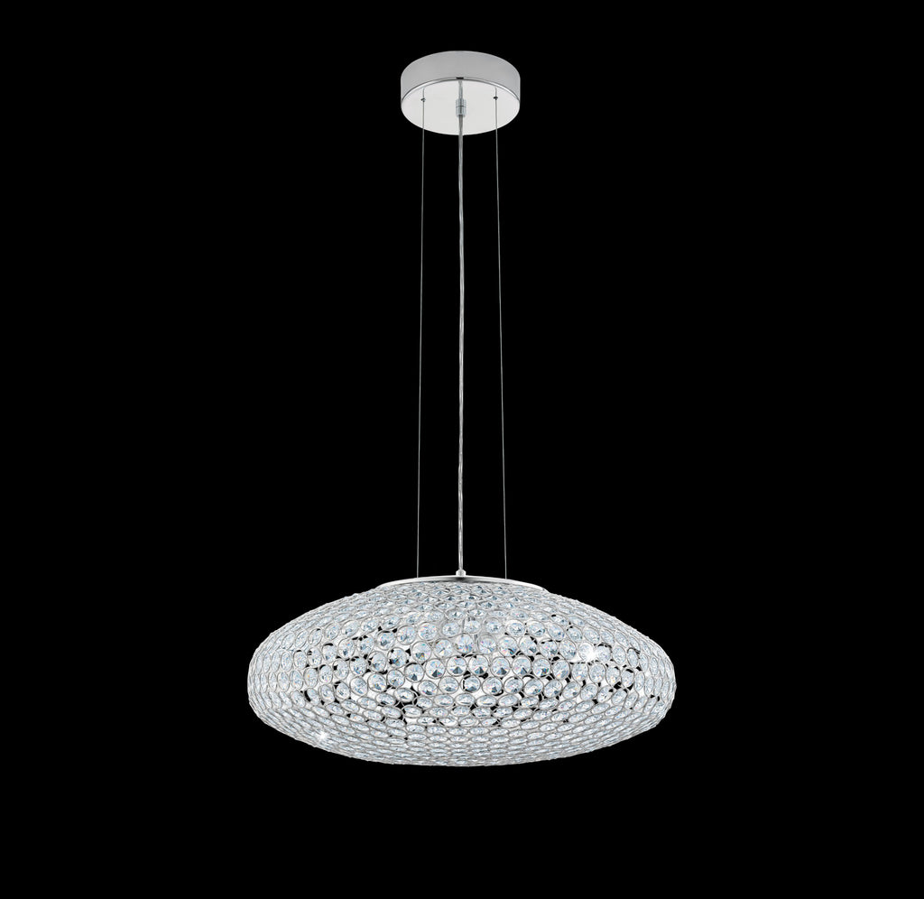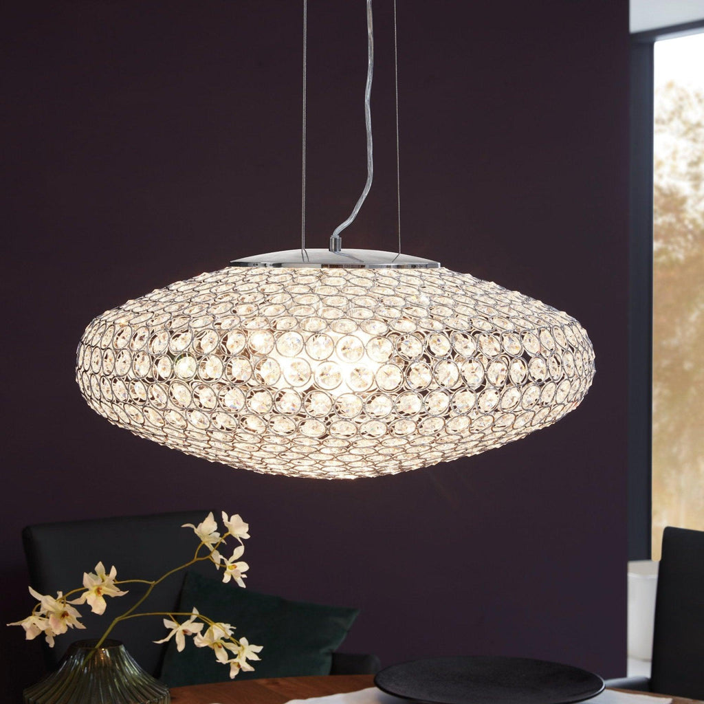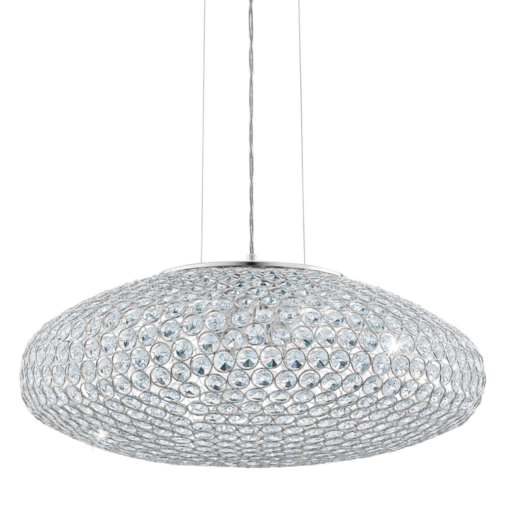 Eglo Clemente Oval Chrome & Clear Glass Crystal Ceiling Pendant - 54cm
