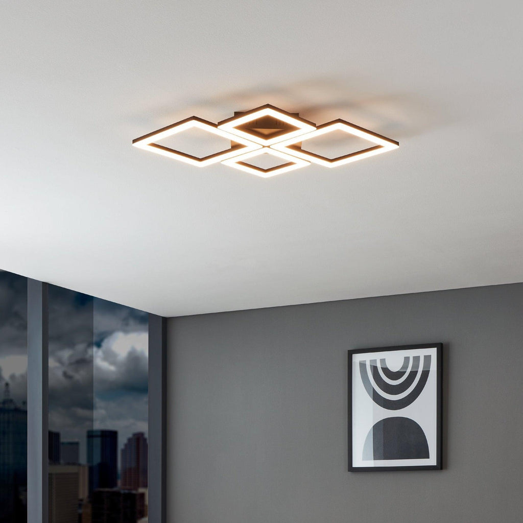 Eglo Connect Paranday-Z Smart LED Black & White Flush - 4 Square Design