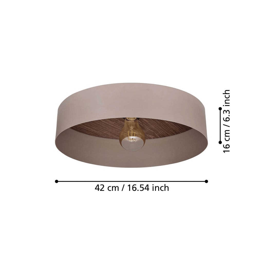 Eglo Duaia Flush Taupe & Wood Round Ceiling Flush - 42cm