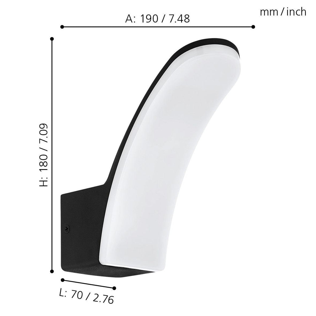 Eglo Fiumicino Black Curved LED Outdoor Wall Light - IP44