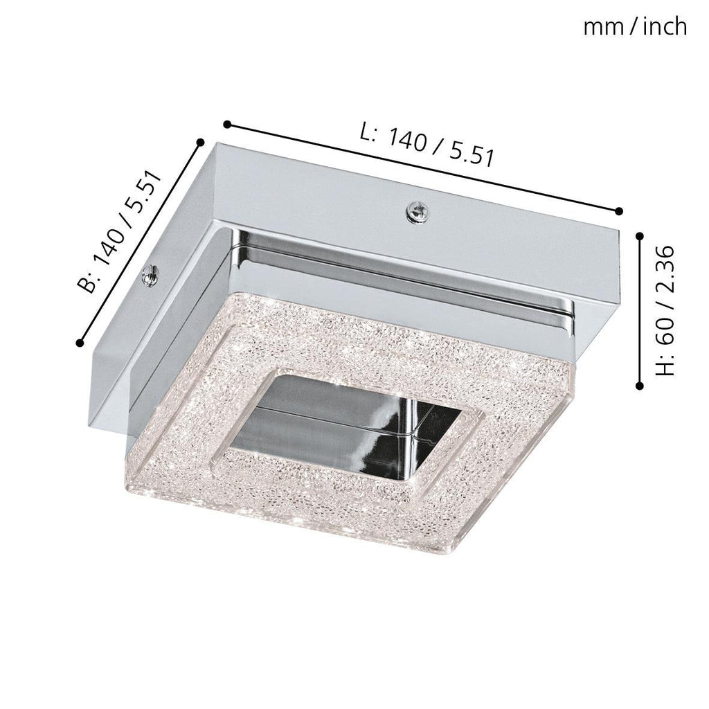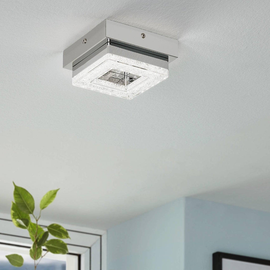Eglo Fradelo Square LED Chrome & Glass Crystal Ceiling Flush