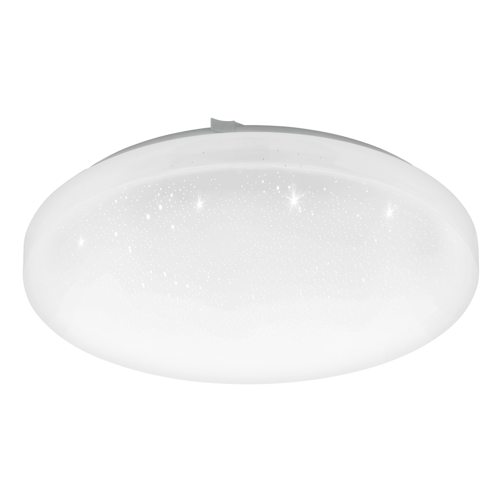 The FRANIA-S LED ceiling light features a round white plastic light panel and a white metal rear panel. When the light is switched on, the light shines through the cover, creating a sparkling effect like stars in the night sky. The integrated LEDs produce a pleasant warm white light. The ceiling light has a diameter of 33 cm and provides attractive lighting while integrating perfectly into modern-style living spaces, including kitchens, living rooms, bedrooms and hallways.
