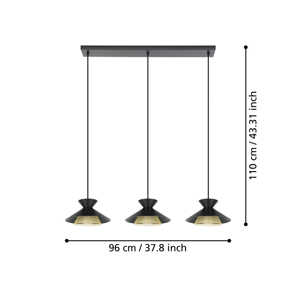 Eglo Grizedale 3 Light Black & Brass Japanese-Inspired Ceiling Pendant