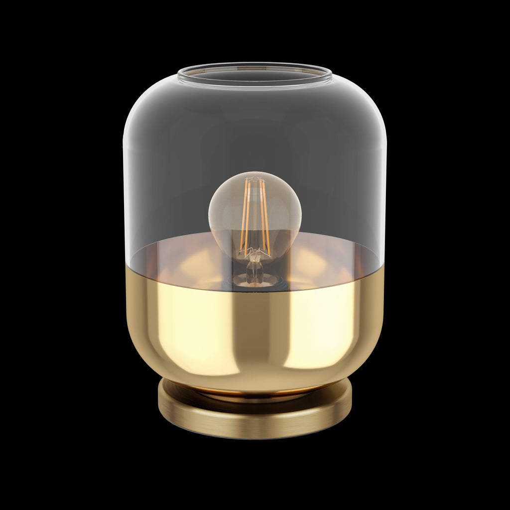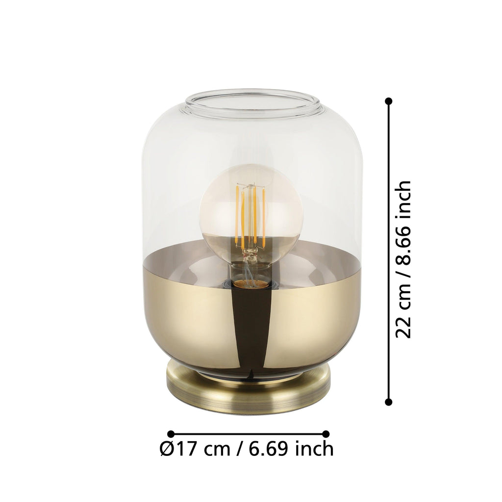 The MARYVILLA table lamp features a lampshade made of clear glass with gold detailing at the bottom covering the lampshade and base. The table lamp can switch on and off easily using the in-line switch on the black cable. The product blends beautifully with modern interiors and provides stylish lighting, whether on the bedside table or in the living room, dining room or hallway. The product has an E27 lamp holder and requires 1 x E27 lightbulb, which is not included.