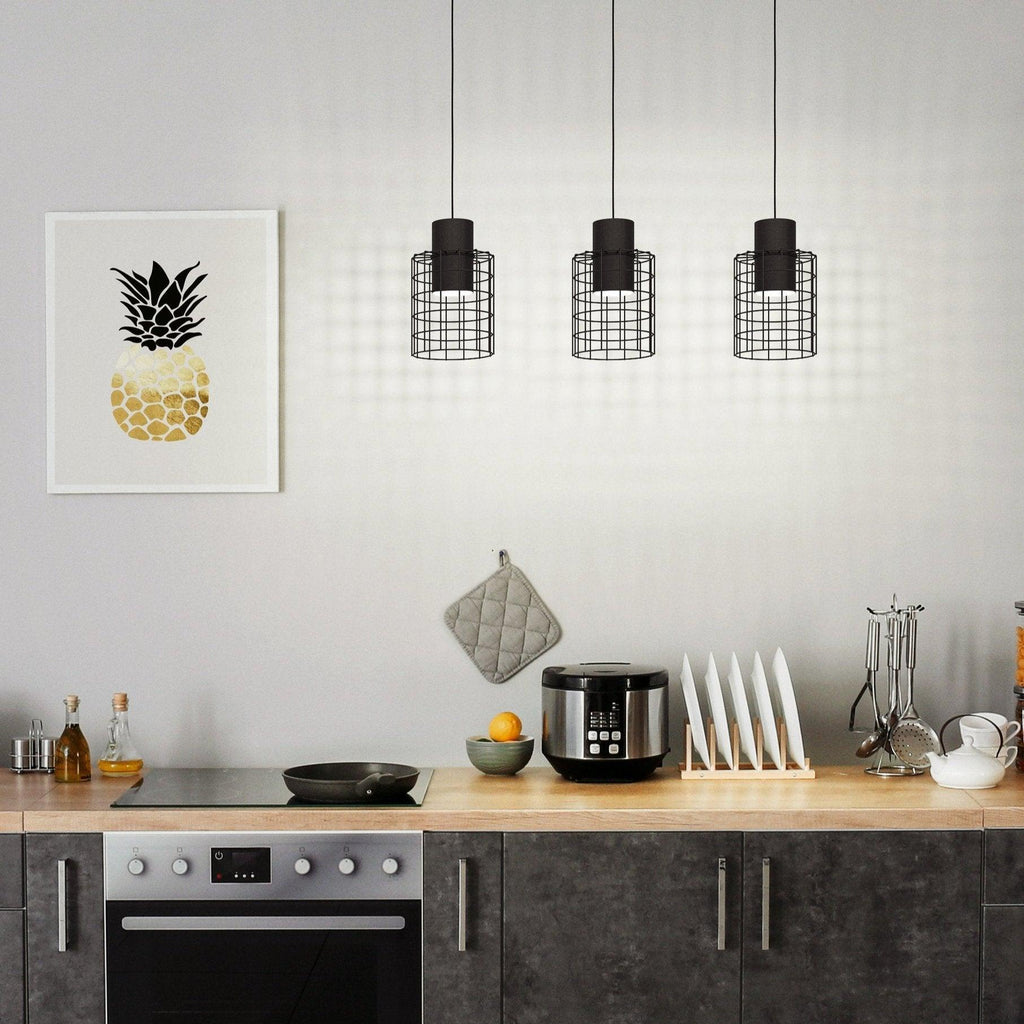 Eglo Milligan 3 Light Black Wire Cylindrical Ceiling Pendant