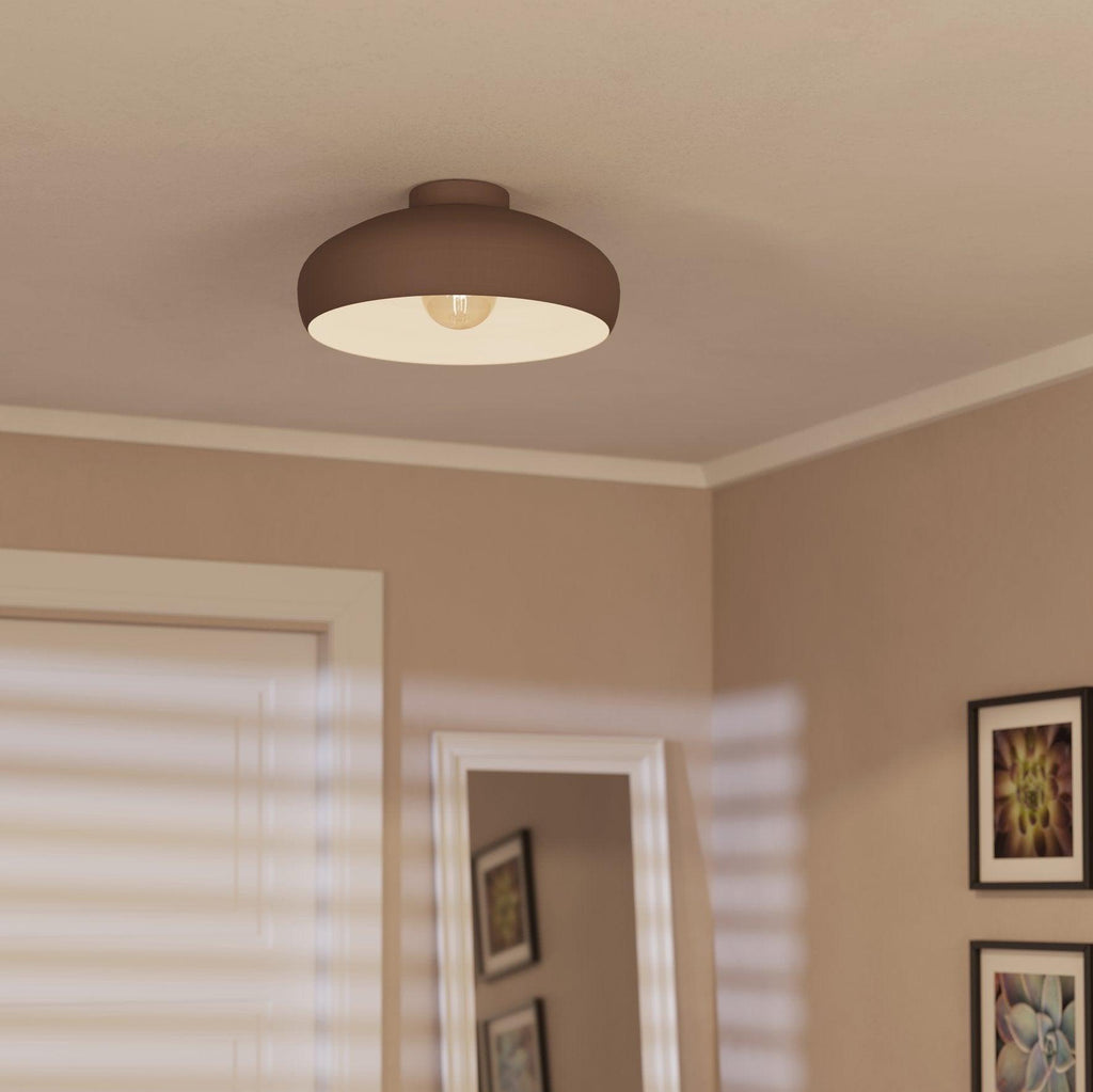 The MOGANO ceiling light has a round mocha-coloured metal lampshade with an inner finish in the same colour. With its monochrome design, the ceiling light blends seamlessly into modern interiors and offers a minimalist lighting solution for any space, whether in the kitchen, living room, bedroom or hallway. The product has an E27 lamp holder and requires 1 x E27 lightbulb, which is not included.