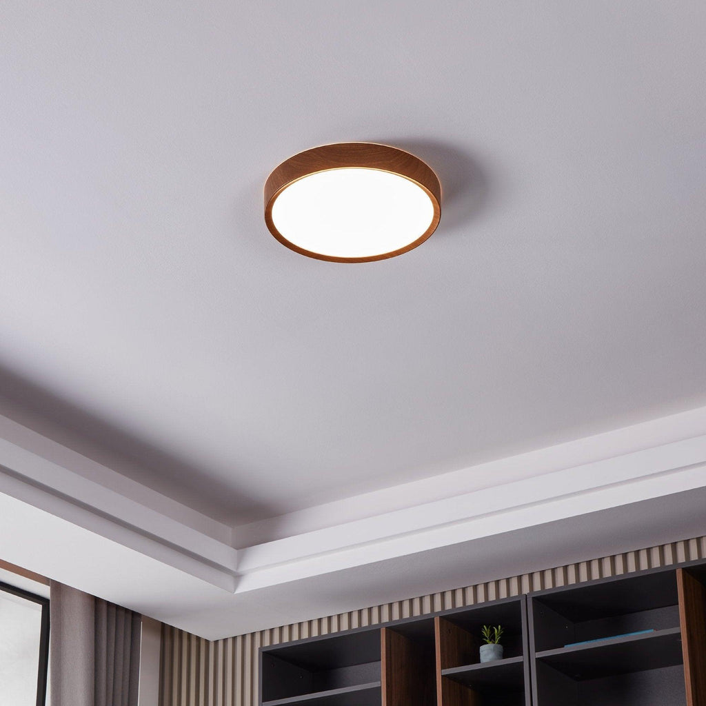 The MUSURITA LED ceiling light has a plastic frame in a trendy wood-style finish and a round white plastic cover. The integrated LEDs produce a pleasant warm white light. Due to the classic design, the product blends seamlessly into almost any interior and compliments any space, whether in the kitchen, living room, bedroom, hallway, dining room or office.
