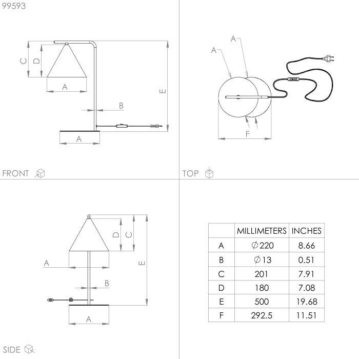 Eglo Narices Black Metal Table Lamp - Conical Brass Shade