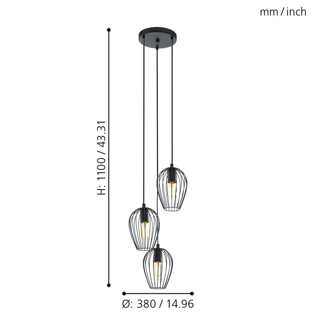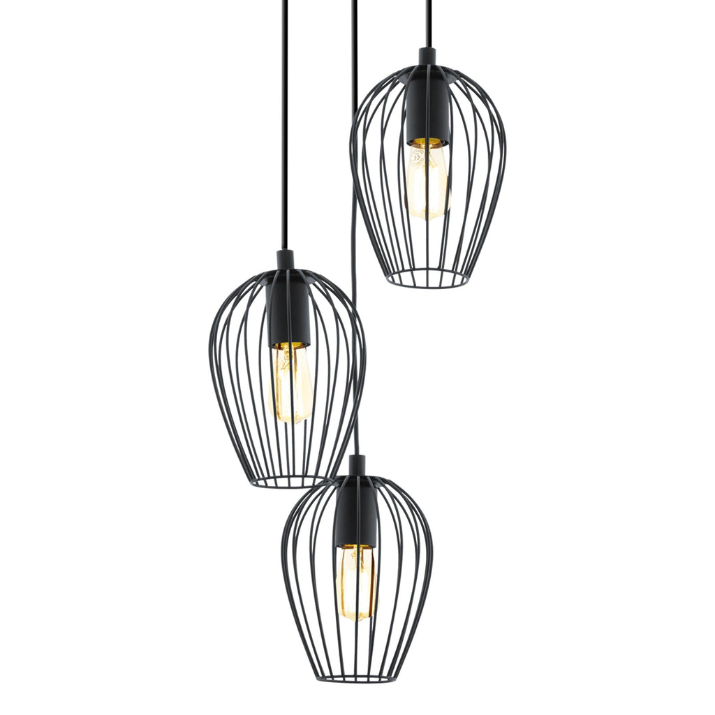 Eglo Newtown 3 Light Black Wire Oval Lampshade Ceiling Pendant