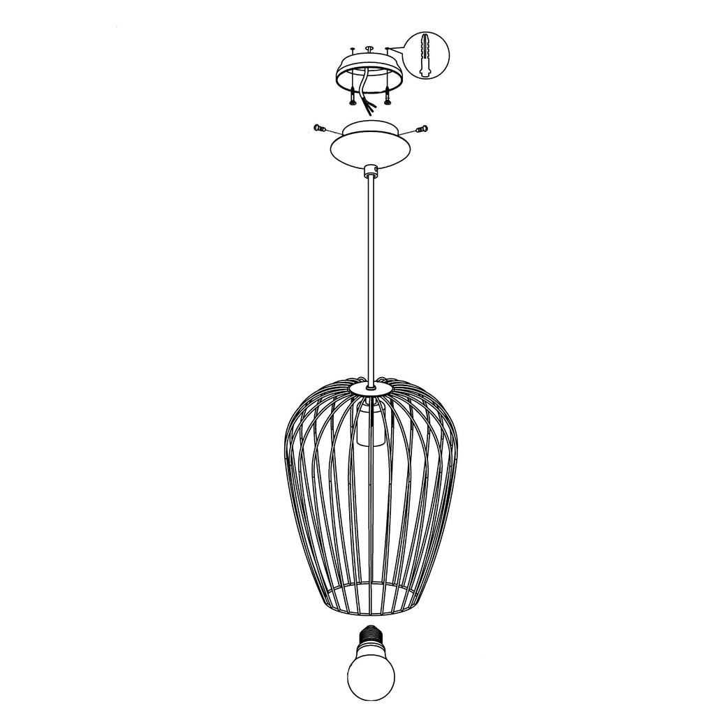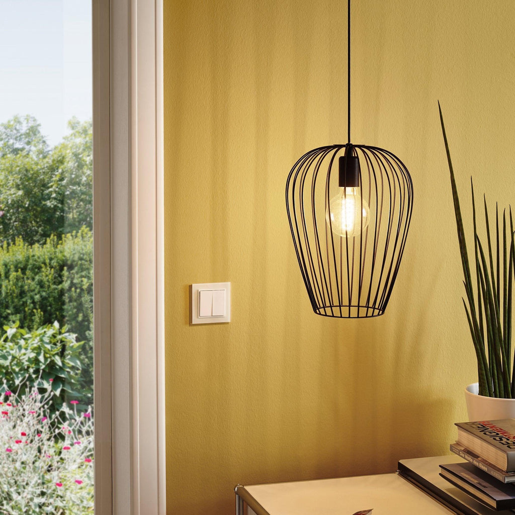 The NEWTOWN pendant light features an oval black wire lampshade suspended from a round black metal canopy. The wire shade creates a fascinating play of light and shadow as soon as the light is on. The pendant light blends seamlessly into modern interiors, creating the perfect lighting in any space, whether in the living room or dining room. The product has an E27 lamp holder and requires 1 x E27 lightbulb.