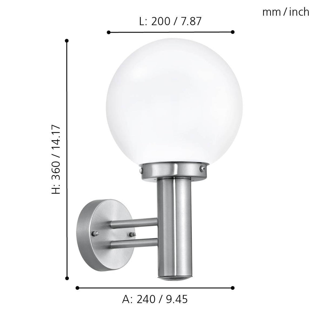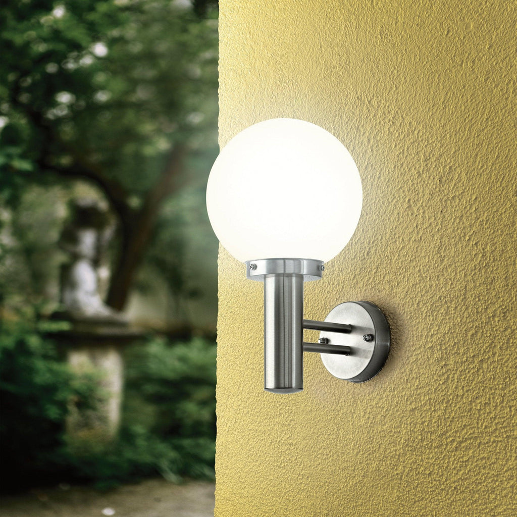 The NISIA exterior wall light features a stainless steel body paired with a spherical glass head in a white satin finish. The light is suitable for outdoor use due to its IP44 protection against spray water. Due to the classic design, this exterior wall light blends into any modern outdoor space, whether on a wall, the entrance area or the terrace. The product has an E27 lamp holder and requires 1 x E27 lightbulb, which is not included.