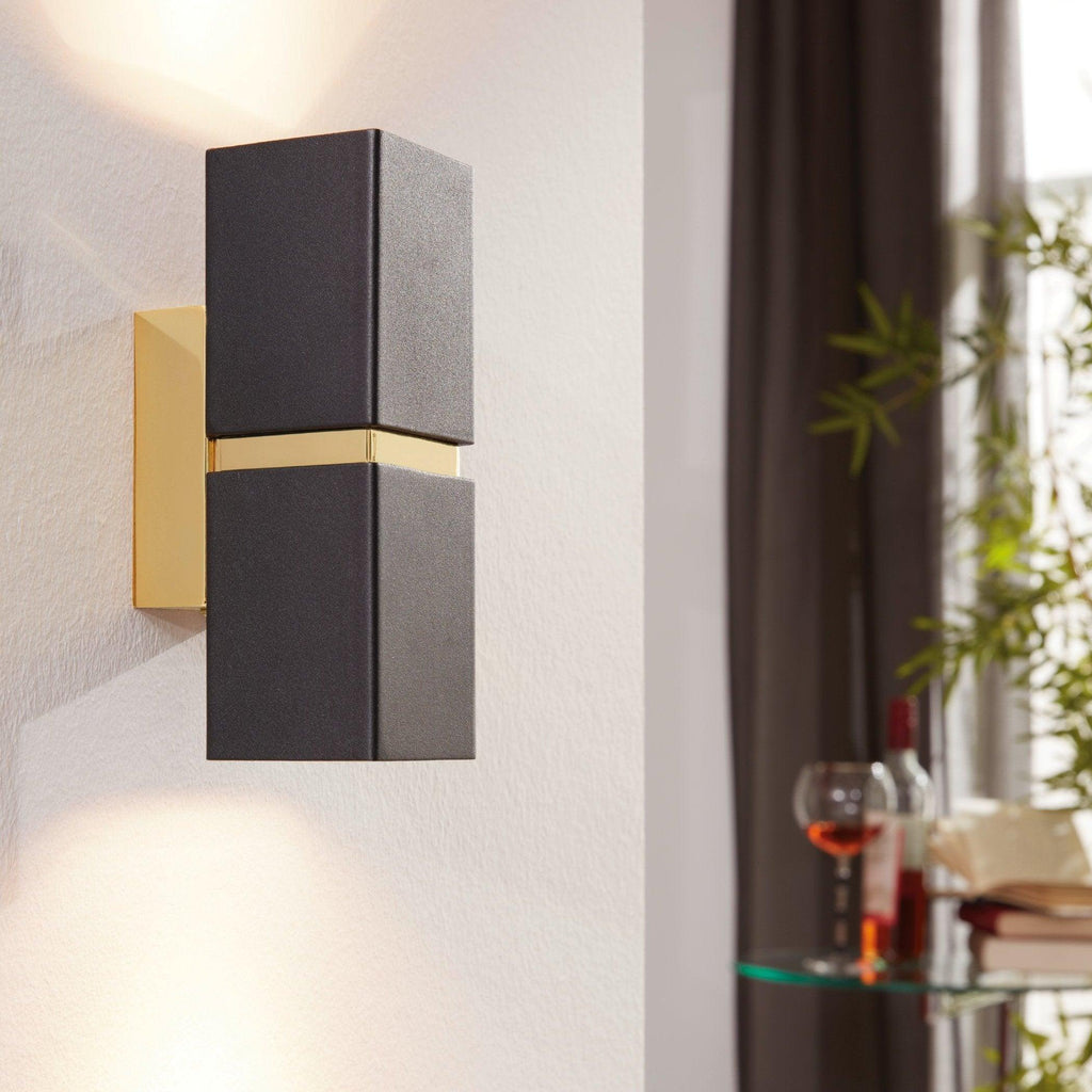 The PASSA LED wall light features an angular black body with a chrome gold wall mount and detailing. The product includes 2 x GU10 LED lightbulbs that produce a warm white light once illuminated and create indirect lighting on the wall due to the up-and-down design. With a modern and minimalist style, the wall light will complement a variety of living spaces, whether in the living room, bedroom, dining room or hallway.